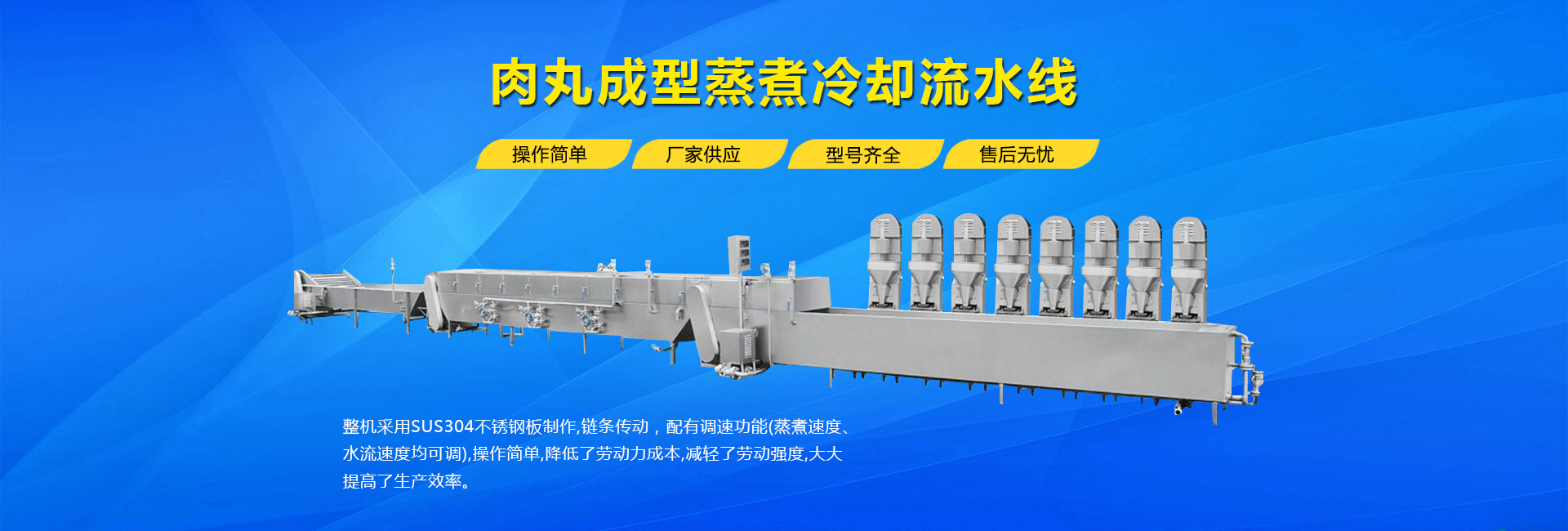公司主要生產不銹鋼制品食品機械:各種規(guī)格型號真空滾揉機、制冷滾揉機、提升機、電加熱夾層鍋、肉丸機、真空攪拌機、絞肉機、灌腸機、打卡機、線扎機、斬拌機、鹽水注射機、煙熏爐、油炸機、巴氏殺菌線、連續(xù)油炸線、肉丸成型水煮線、醬鹵生產線、肉丸破碎機、真空包裝機、洗袋風干機、豬頭劈半機、不銹鋼火腿模具、肉斗車、案桌、煙熏車、屠宰類機械設備、清洗風干設備、肉類解凍設備、滾筒拌料機等。產品廣泛適用于火腿腸、肉丸、肉串、鹵制品、海產品、禽類深加工、油炸、泡椒風味、速凍水餃、魚豆腐、千葉豆腐、豆腐干、牛肉干、牛排雞排類、禽蛋、麻辣、休閑、水果蔬菜清洗、中央廚房、餐飲連鎖、寵物食品等食品生產。